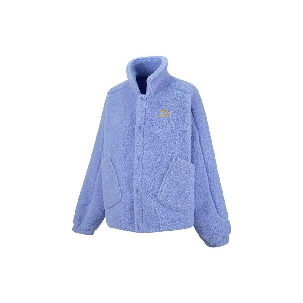 Puma Solid Color Logo Embroidered Faux Shearling Jacket Women Jackets Lavender 539954-27