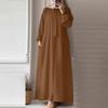 Muslim Women's Plus Size Fashion Bow Tie Lapel Solid Color Long Sleeve Shirt Sundress Pocket Loose Long Dress