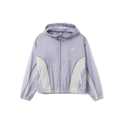 Li Ning Sports Trend Series Loose Color Block Ice Silk Quick Dry Hooded Jacket Women Jacket Purple AFDS310-3