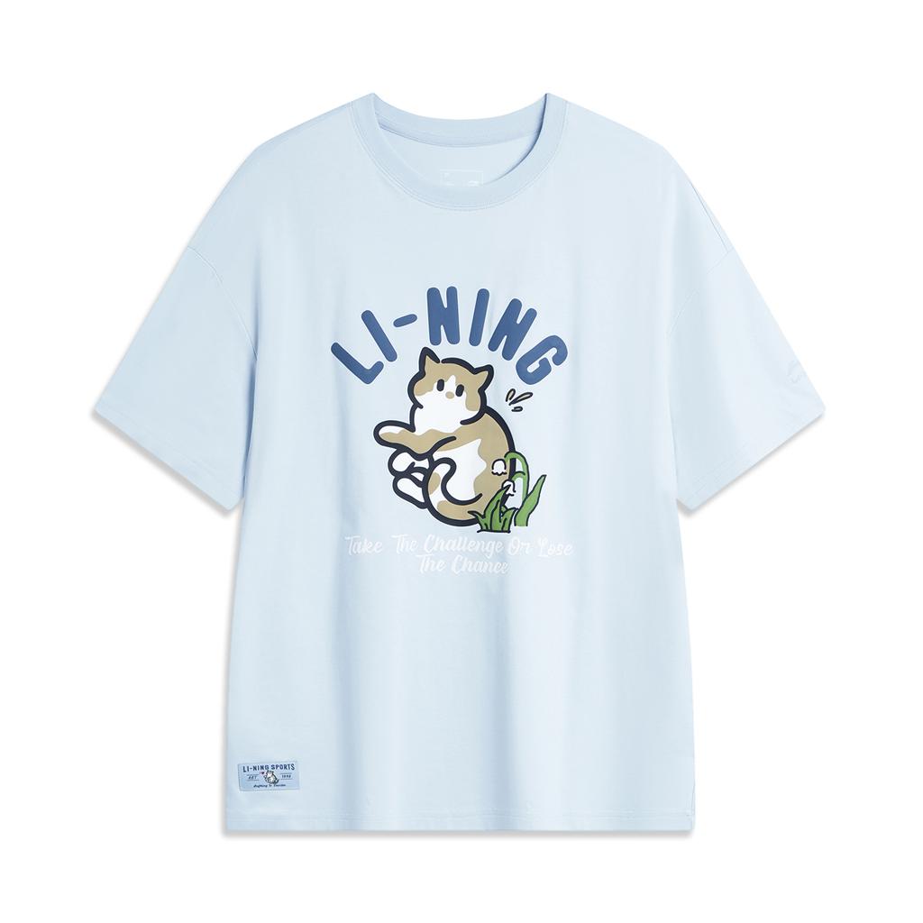 Li-Ning Cooling Tea T-Shirt Quick-Dry Cool Casual Sports Top Letter Print Round Neck Loose Short Sleeve Women Tops Cloud-Blue AHSU750-2