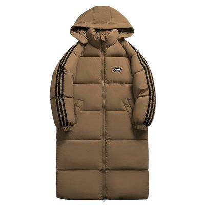 Winter Three Bar Long Sports Cotton Jacket, Long Over The Knee Down Cotton Jacket, Cold Resistant and Windproof Thick Cotton Jacket for Men