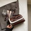 Vintage Burgundy Plush PU Splicing Crossbody Bag Autumn/Winter Women's Flip Bow Shoulder Bags Commuter Versatile Handbag