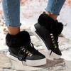 Christmas Fashion Thickened Warm Fur Red Boots, Solid Color Lace Up Flat Warm Sneakers