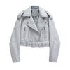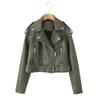 Women Oversized Vintage Loose Pu Faux Leather Short Jacket with Belt Streetwear Female Zipper Retro Moto Biker Coat Outwear
