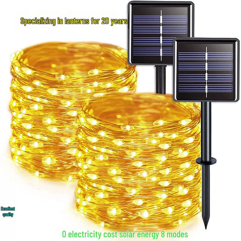 LED Solar Copper Wire Happy Birthday Decorative Outdoor Courtyard Lamp with 8 Functions