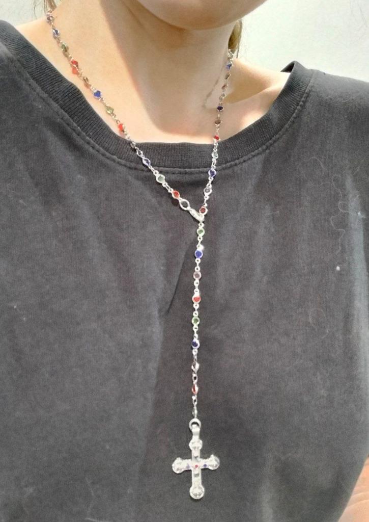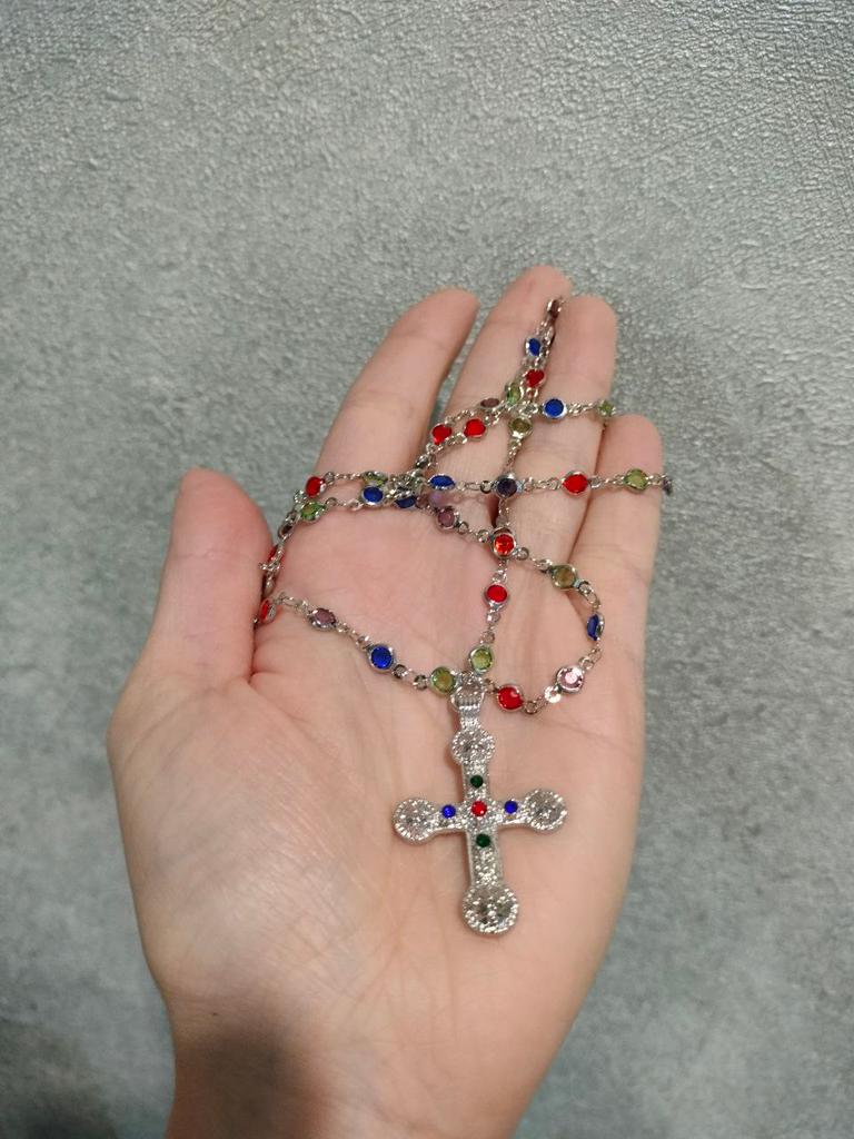 Cross Pendant Necklaces for Women Zinc Alloy Colorful Rhinestones Necklaces Gold Silver Colors Long Choker Trendy Party Jewelry