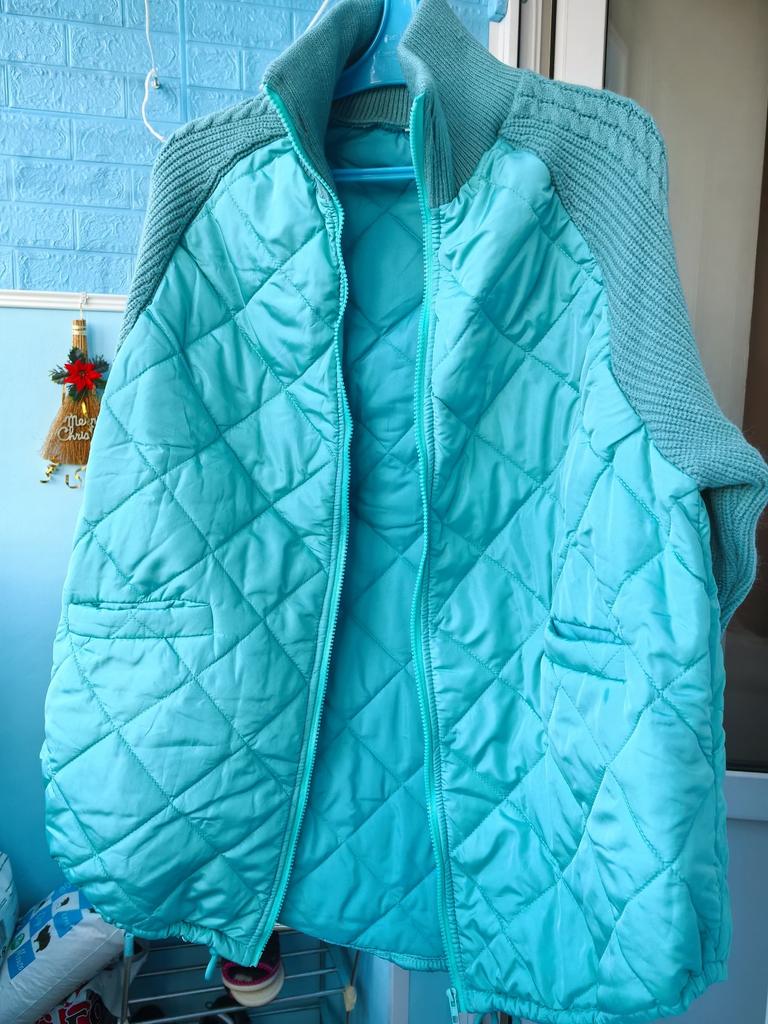 The jacket is lightweight, soft, and comfortable. I love jackets that combine knitwear with fabric, raincoat fabric. But it's too big. I myself, apparently, made a mistake with the size selection. It's too big for my 52nd. Thank you. I will order more carefully