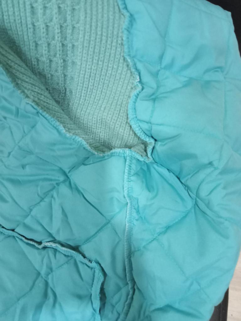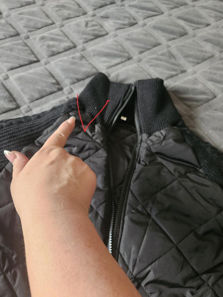 The jacket does not match the description and the picture. It is not straight, as in the photo. Elongated at the front and back. Not satisfied with the purchase. On the back, where the collar is knitted to the back, a bubble forms. The seam on the cuff of the left sleeve has come apart.