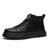 Fashion New Men's High-top Leather Casual Shoes Black Thick-soled Business Shoes for Men Classic Trendy All-match Zipper Mens Sneakers