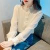 French Lace Stand Collar Chiffon Blouse with Elegant Splicing and Long Sleeves