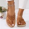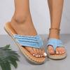 Fashion 2024 Summer Style Flip-flops for Women, Fashionable Flat-soled Grass Woven Thong Beach Shoes, Large Size Sandals for Outer Wear