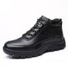 Fashion NEW Genuine Leather Cotton Shoes Men's Winter Plush Warm Leather Shoes Thickened Wool Anti-skid Leisure Trend High Top Shoes Men