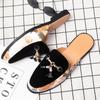 Fashion Designer Italian Luxury Brand Mens Casual Leather Loafers Sandals Business Men Half Shoes Mules Man White Black Slides Slippers