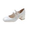Fashion Pink Double Breasted High Heels for Women 2024 Summer New Thick Heeled Square Toe Japanese Gentle French Mary Jane Women's Shoes
