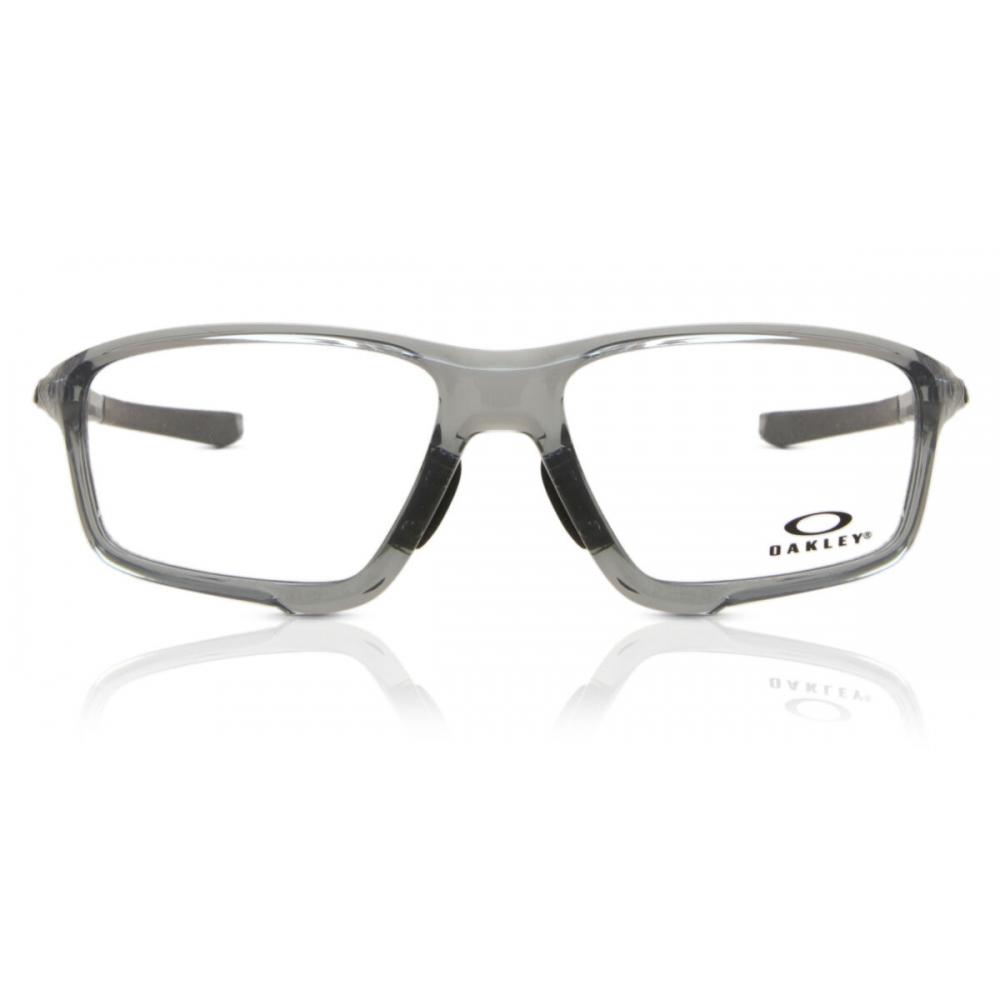 This eyewear features a transparent grey frame made of plastic, styled in a full rim rectangular shape designed for men. The lenses are clear and customizable, and the condition is new. The Oakley OX8080 Crosslink Zero Asian Fit 808004 Men's Glasses are crafted to elevate your style while offering a perfect blend of functionality and aesthetics. Experience comfort and fashion effortlessly.