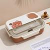 Cartoon Cute Bear 4-Grid Lunch Box Including Tableware Lunch Bento Box for Students Office Workers Can Be Heated By Microwave