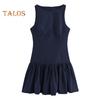 Women Summer Dress Sleeveless Bow Decor Pleated A-line Solid Color Mini Dress Back Zipper Closure O Neck Vest Dress for Dating Party