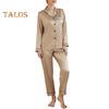 2 Pcs/Set Pajamas Suit Satin Single-breasted Cardigan Shirt V Neck Notch Collar Solid Color Shirt Wide Leg Loose Trousers Nighty Suit Sleepwear