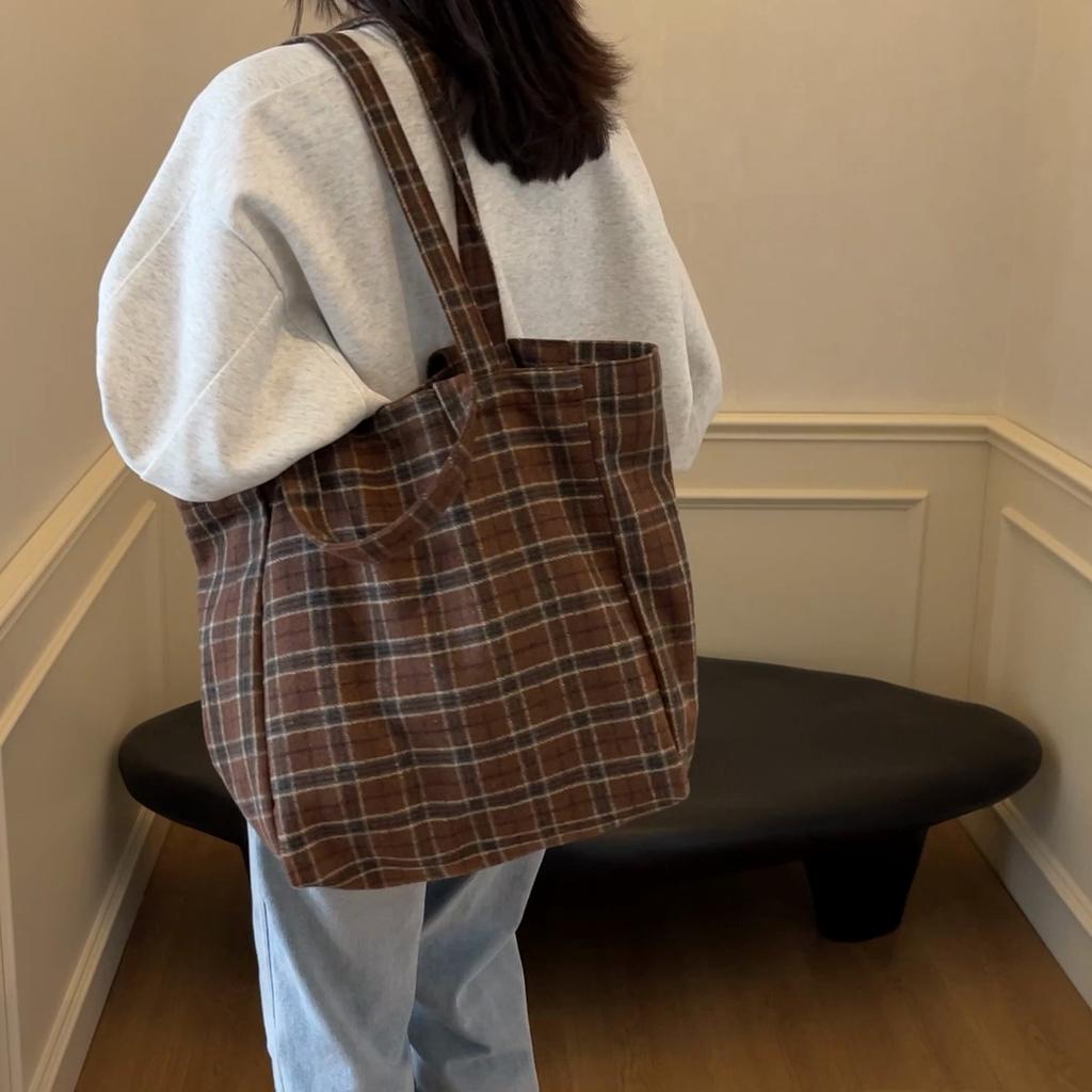 Women's Large Capacity Tote Bag Plaid Handbag Commuter Shoulder Bag