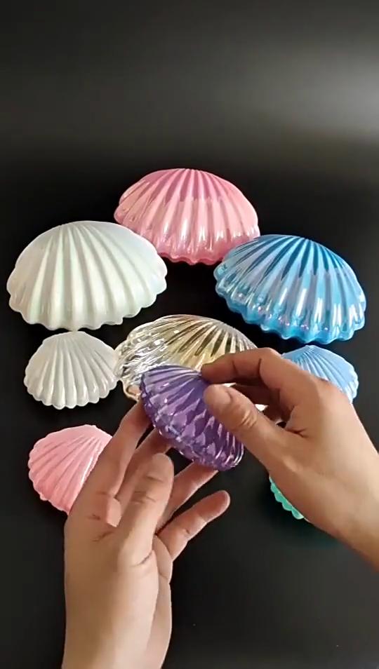 1Pc Seashell Decorative Box Ocean Theme Plastic Storage Container , Perfect for Wedding Candy, Jewelry