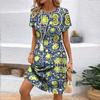 Fashion Womens Loose Sun Flower Print O Neck Short Sleeve Loose Streetwear A-line Dress
