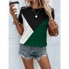 Women's Summer Contrasting Splicing Round Neck T-shirt Loose Casual Women's Top