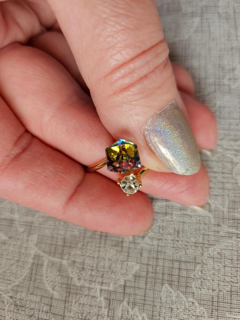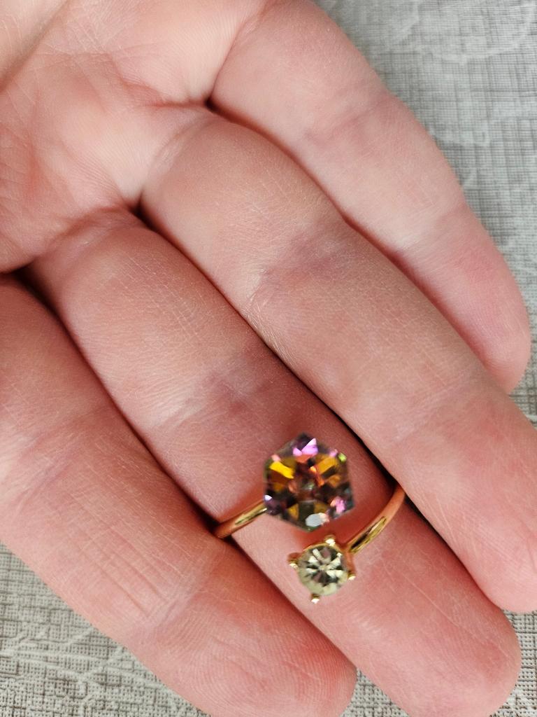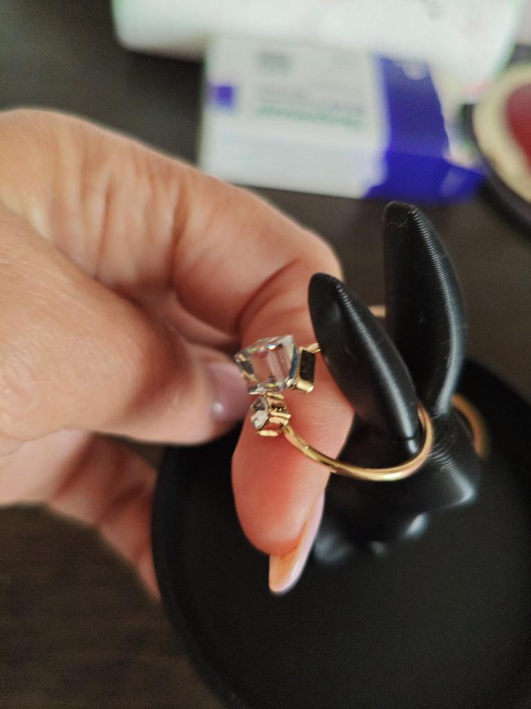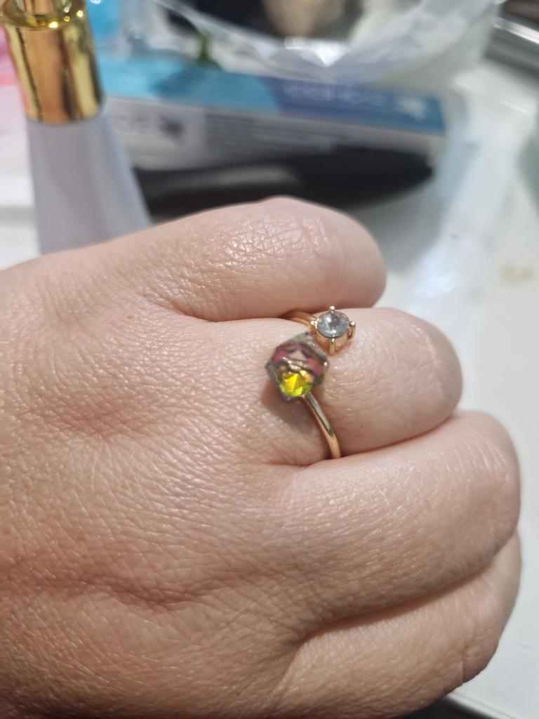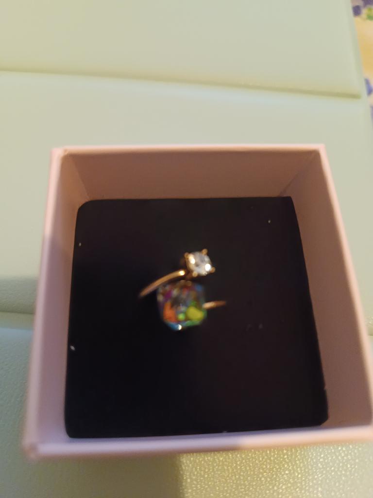 Beautiful cube-shaped stone. The only thing is, I've already ordered it for the second time, because the gold coating of the first ring wore off very quickly! Wear it carefully