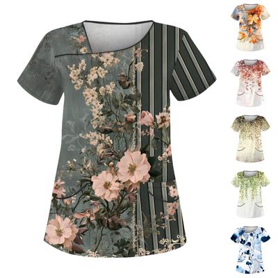 Women's Casual Print Short Sleeve Sloping Collar Workwear Top With Double Pockets
