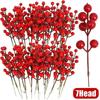 1/50PCS Artificial Berries Christmas Decoration Red Berry Branches 7/12/14 Head Berries Stems Bouquet DIY Xmas Tree Wreath Decor