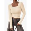 Women's Spring and Autumn Long-sleeved Scoop Neck Slim Ribbed Knit T-shirt Color-blocked Shirt