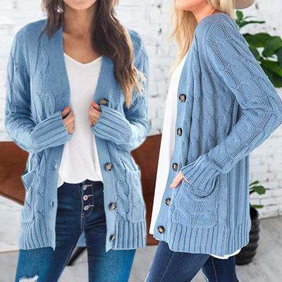 Women Sweater Jacket Long Sleeve Button Down Cable Knit Winter Coat with Pocket Solid Color Loose Fit Sweater Coat