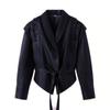 Vintage Lapel Lace-up Artificial Leather Jackets Women Chic Solid Long Sleeves Pockets Short Coats Autumn Lady Fashion Streetwear