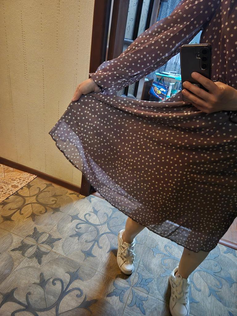 Elegant maxi dress with belt in polka dot 👗👍! Delivery time 🌞: 18 days to Germany. ♻️Scope of delivery: The delivery includes a beautiful midi dress 👗 in the appropriate size and color. The product is available in 2 colors. It is available in sizes from S to XL. I ordered the product in size S in coffee brown and the dress 👗 fits me perfectly and the color is exactly as shown. 🤗🤗🤗👍 I normally wear dress size 36 (S). I weigh 55kg and am 167cm tall. The dress is true to size. 🌞Quality ♻️: The dress is light and swings beautifully. Very comfortable on the skin. The dress has a matching belt with an elastic waist. You can use the dress 👗 for a party or for everyday use. Perfect for spring and summer!!👌👌👌👌I particularly like this great polka dot print. It looks so beautiful!!👍👍👍👍💯💯💯💯 This dress 👗 arrived in top condition💯💯, I didn't even iron it. ✅️Material composition: 100% polyester. But the material is very comfortable on the skin. I think the DRESS 👗 is simply mega🔝🔝🔝🔝🔝 ✳️Summary ✳️: A beautiful casual long-sleeved dress with a belt 👗 that you can order in your normal size. I would be happy to recommend the product. 5 stars. 🌟! Thank you Joom and the seller 🤗🤗🤗👗👍