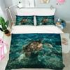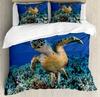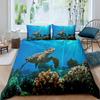 Sea Turtle Duvet Cover King Size Shark Bedding Set,Ocean Animals Bed Set,Tortoise and Coral Printed Polyester Comforter Cover