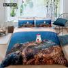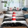 Lighthouse Duvet Cover Set Nautical Surfing Ocean Wave Bedding Set Queen Polyester Coastal Nature Theme Quilt Cover for Kids Boy