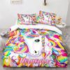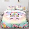 Cartoon Unicorn Floral Rainbow Girl's Eyelash Bedding Set Boys Girls Twin Queen Size Duvet Cover Pillowcase Bed Kids Adult