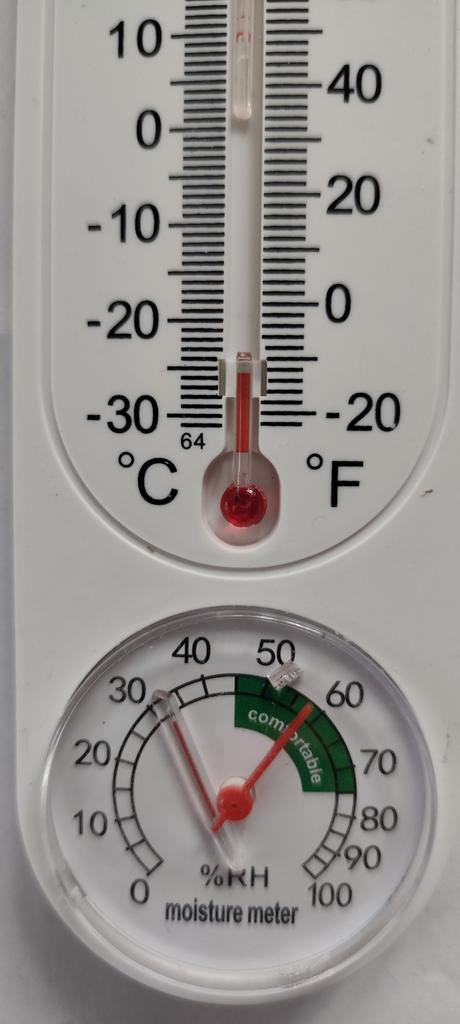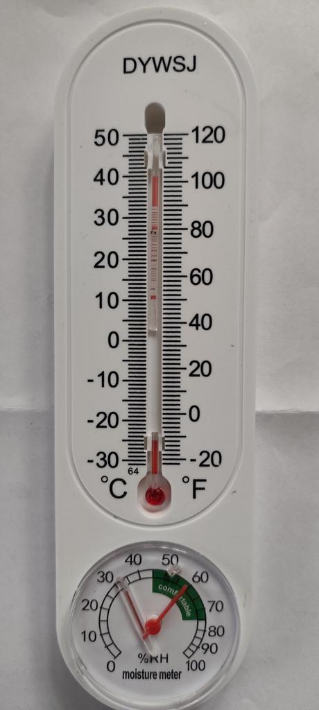 Thermometer from +50 to -30 degrees and with a humidity dial.