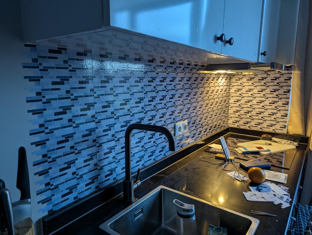 Just stickers in real life do not look as good as in the picture and especially on pictures single tiles look bigger, but applied on the wall looks really good. Application is nice. Easy to unstick to fix mistakes. Easy to cut to shape.