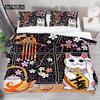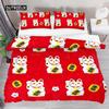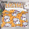 Japanese Lucky Cat Duvet Cover Set Kawaii Cats Bedding Set for Kids Boys Girls Exotic Style Black White Kitten Comforter Cover
