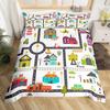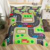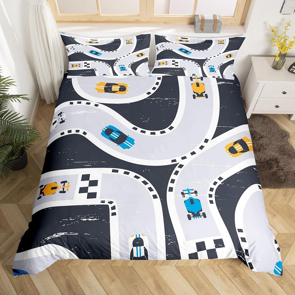 Racing Car Track Duvet Cover Queen for Kids Boys,Construction Vehicle Grey Bedding Set Red Cars Road Traffic Quilt Cover 3 Pcs