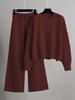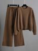 Women's Solid Color Knit Pant Set: Long Sleeve Crew Neck Sweater & Wide Leg Pants