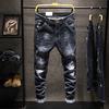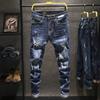 Four Season Wearable Men'S Embroidered Jeans With Slim Fit And Stretchy Trend, Small Leg Pants With Ripped Patches, Personalized Long Pants