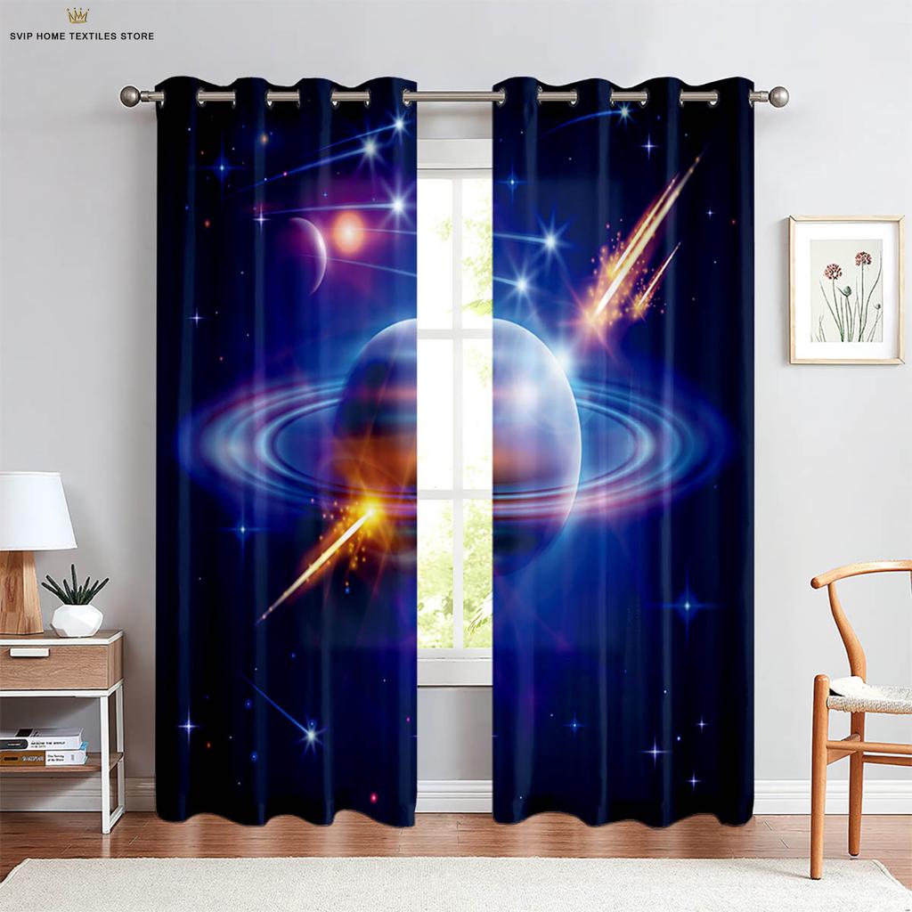 Dreamy Starry Sky Galaxy 3D Printed Curtains, Blackout, Heat Insulation, Living Room, Study, Bedroom, Home Decoration, 2 Pcs
