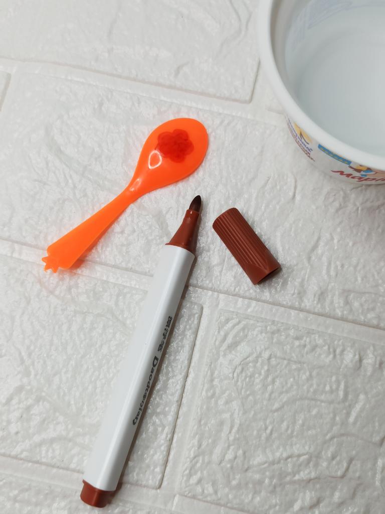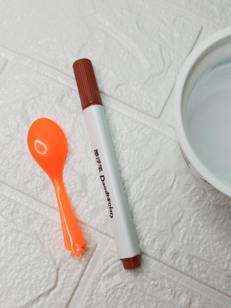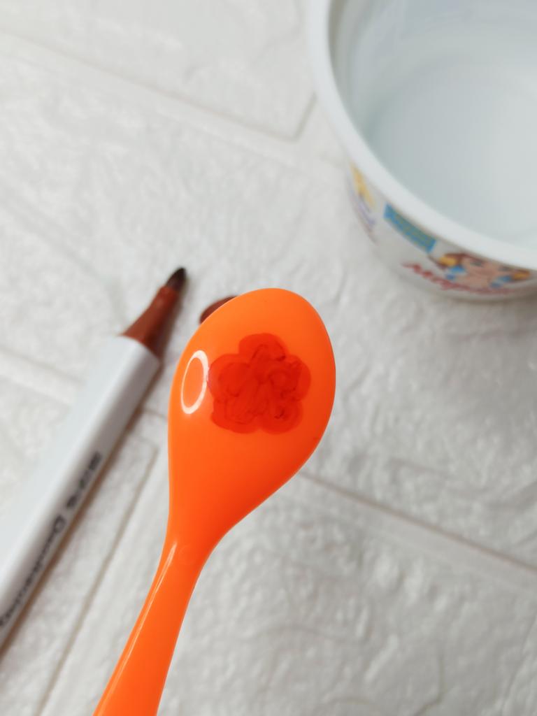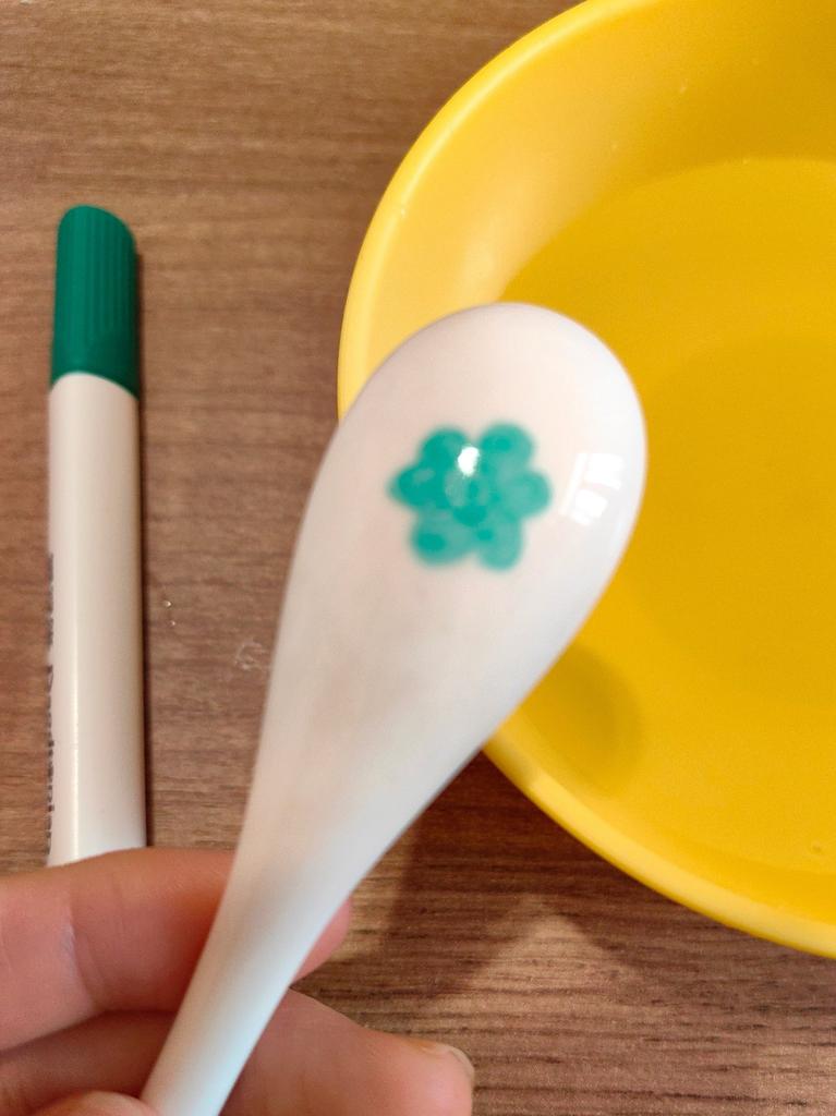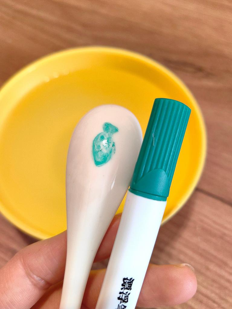 3.After drawing on the spoon with the float pen, slowly dip it into the water