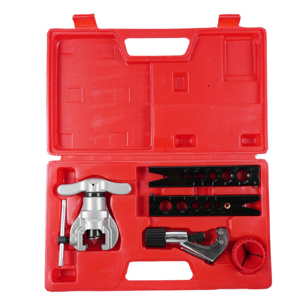 Practical Tool KitCreate 45 degree precise flares in soft copper, brass, aluminum and mild steel tubing...Including a tube cutter can also cut PVC pipes. Made of metal material, which are durable. widely used in gas, water, refrigeration, HVAC and brake line application, etc.