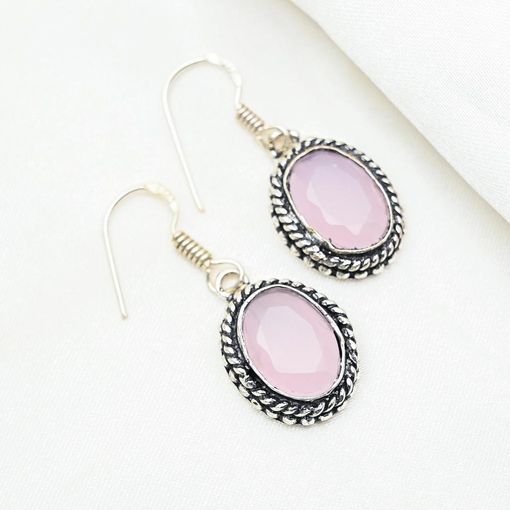 Pink Chalcedony Earrings Gemstone Jewelry, 925 Solid Sterling Silver Handmade Earrings, Latest Design Jewelry