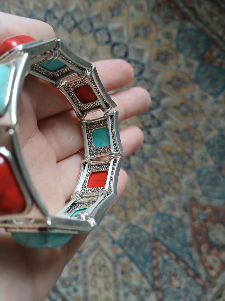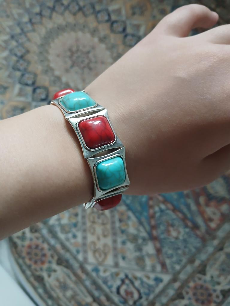 Vintage Bohemian Green Stone Bracelet Women's Ethnic Style Bracelet Personalized Geometric Square Jewelry