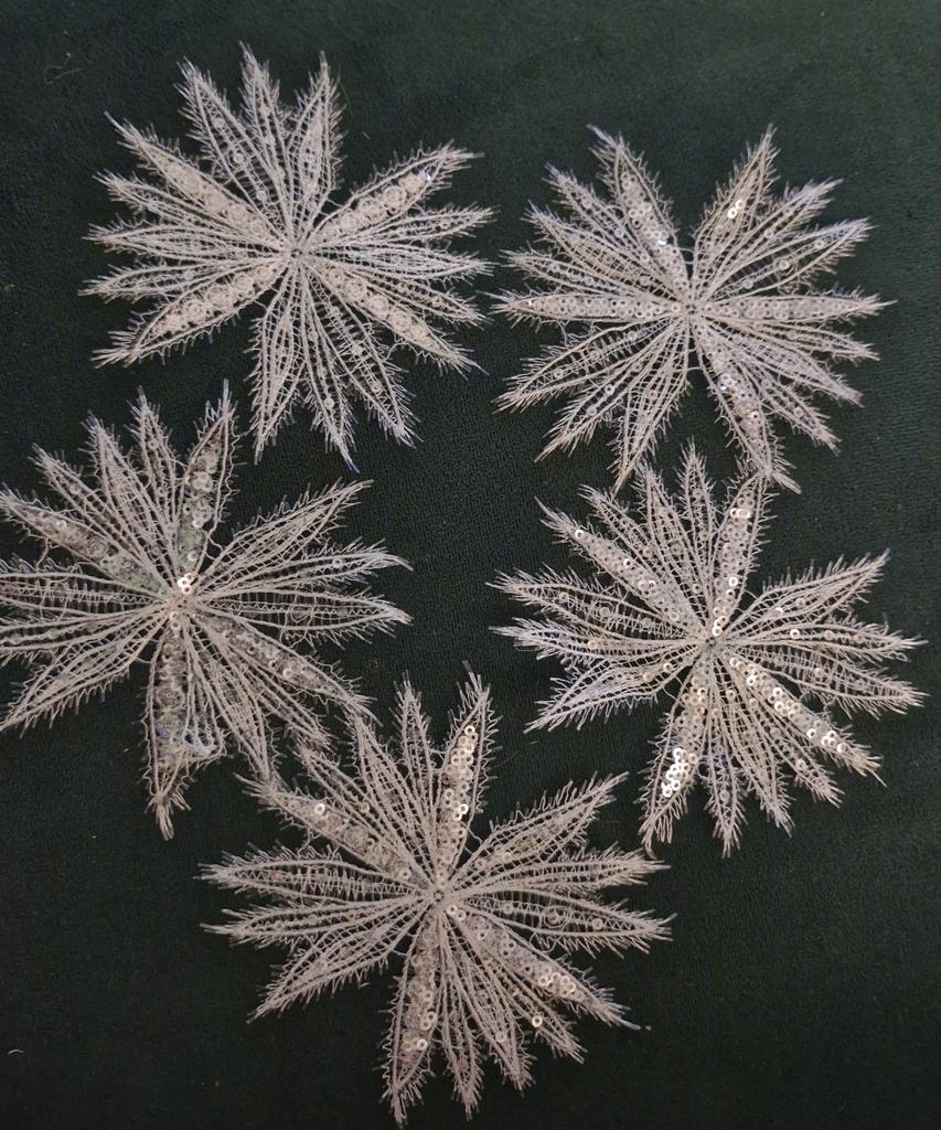 5Pcs White Sequins Embroidered Patch For Wedding Dresses Lace Applique Repair