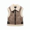 Autumn Winter Ladies Warm Fur Integrated Sleeveless Fleece Stitching Coat Vest Jacket