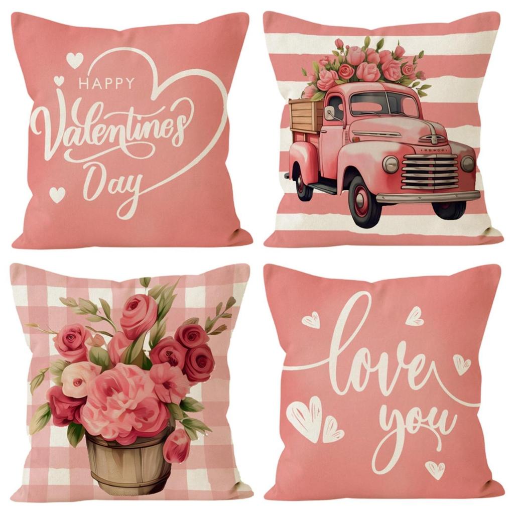 Car Pillow Cover Valentine's Day Party Sofa Decorative Pillow Cover Linen Printed Cushion